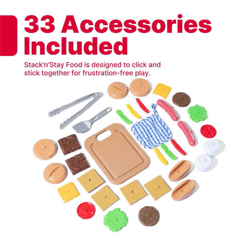 • Accessories Included - A 33-piece toy food accessory set is designed to easily click and stick together