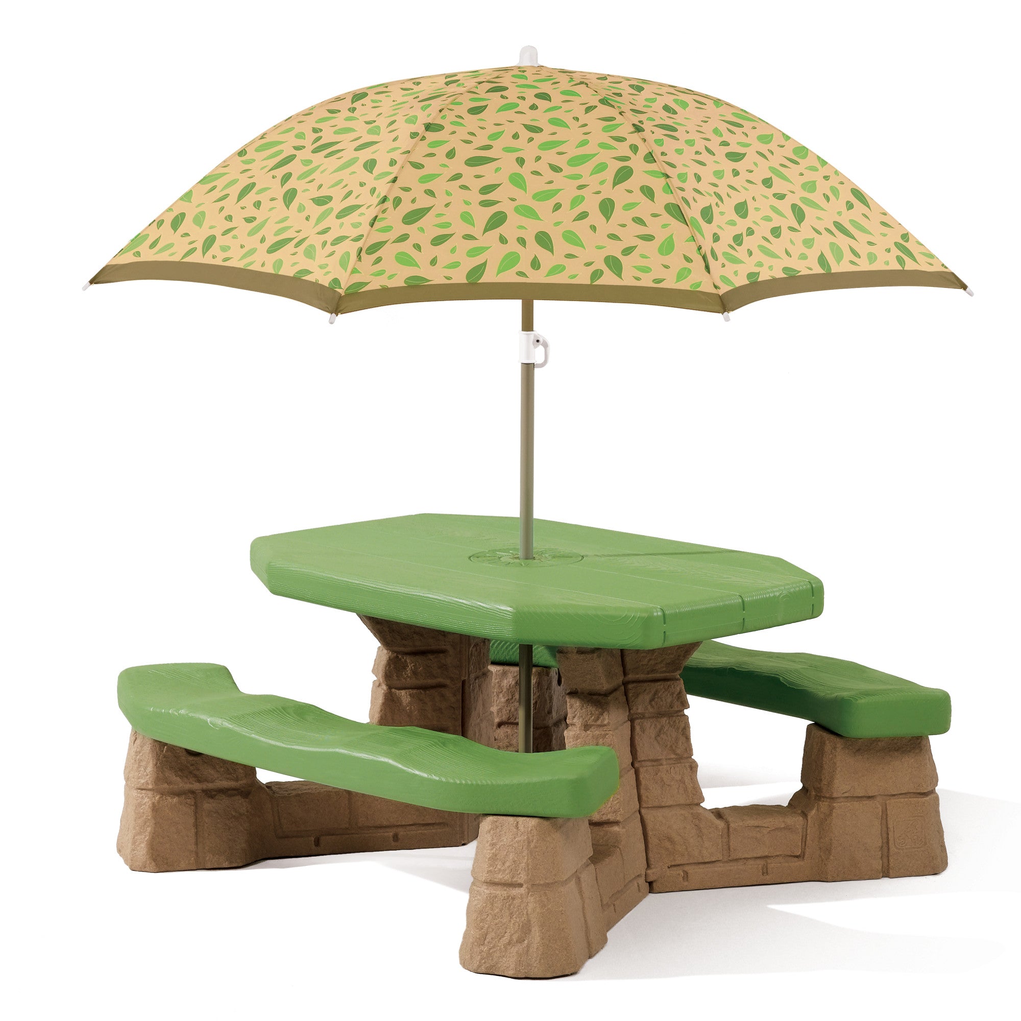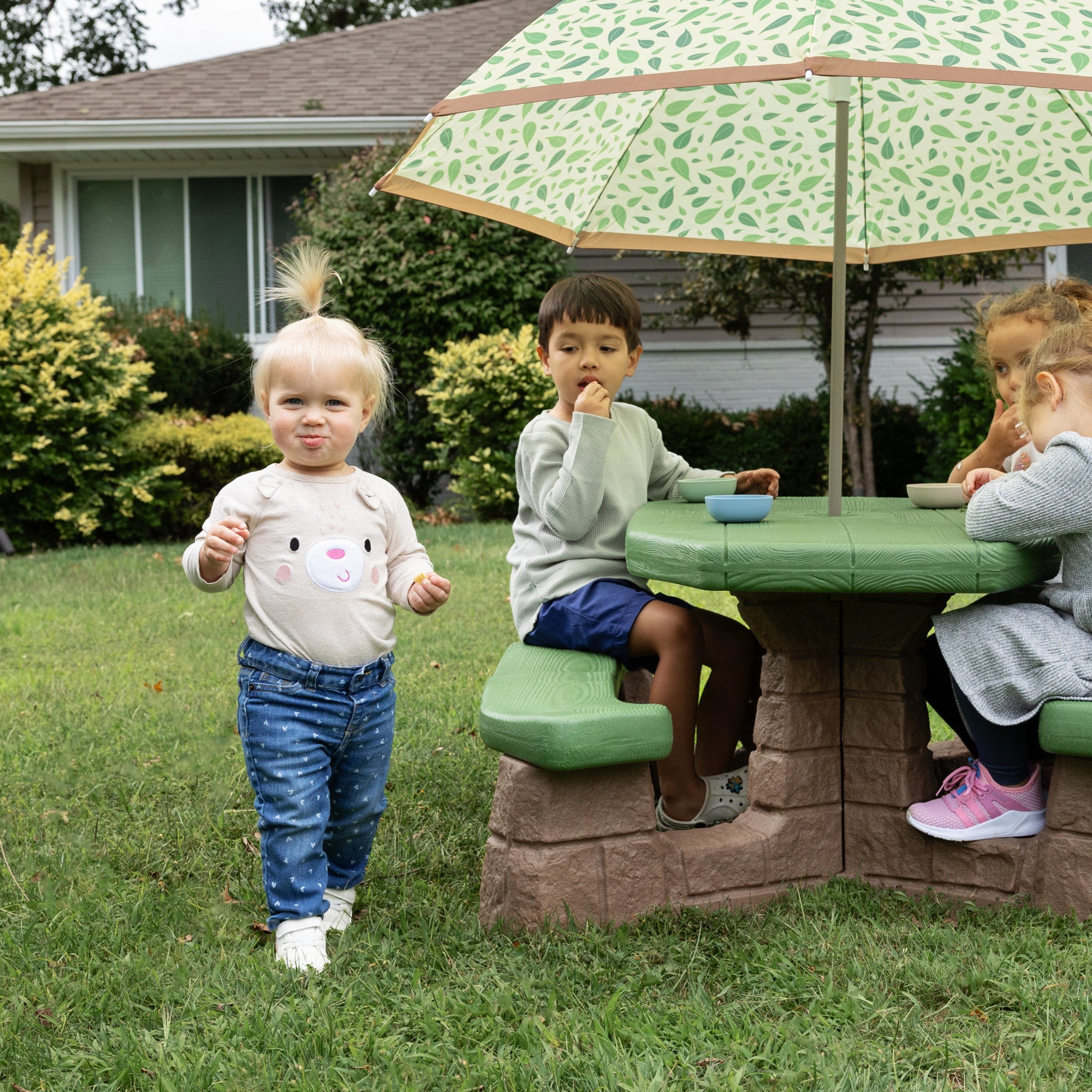 The Naturally Playful® Picnic Table with Umbrella™ features a neutral color palette that seamlessly fits into any play space or backyard aesthetic. Toddlers and preschoolers have a spacious place to relax during playtime; at thei… Read more Read more