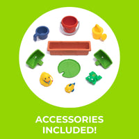 • Accessories Included - A 10-piece accessory set includes a bucket, squishy animal squirt toys & more
