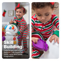 • Lights & Sounds - Snowman's hat plays holiday tunes and lights up for festive sensory delights