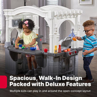 • Walk-In Play Kitchen - Open concept design encourages social play for multiple kids at different stations