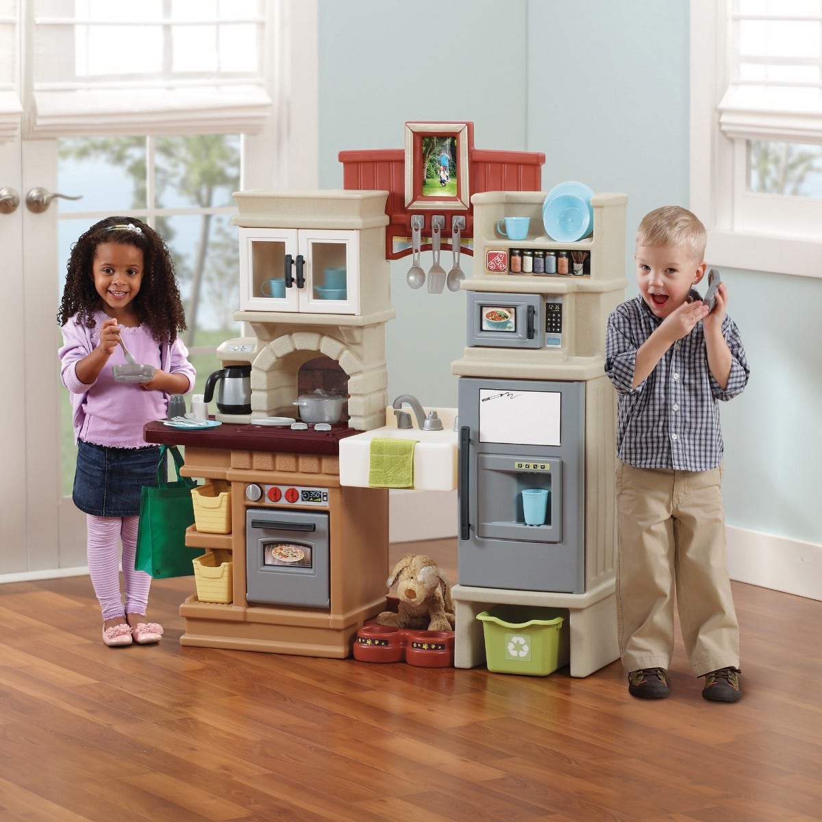 This Step2 Kitchen is the perfect balance between traditional and modern design kitchen elements! This large play kitchen set for kids includes many accessories and lifelike appliances that toddlers and preschoolers will love. Mi… Read more Read more