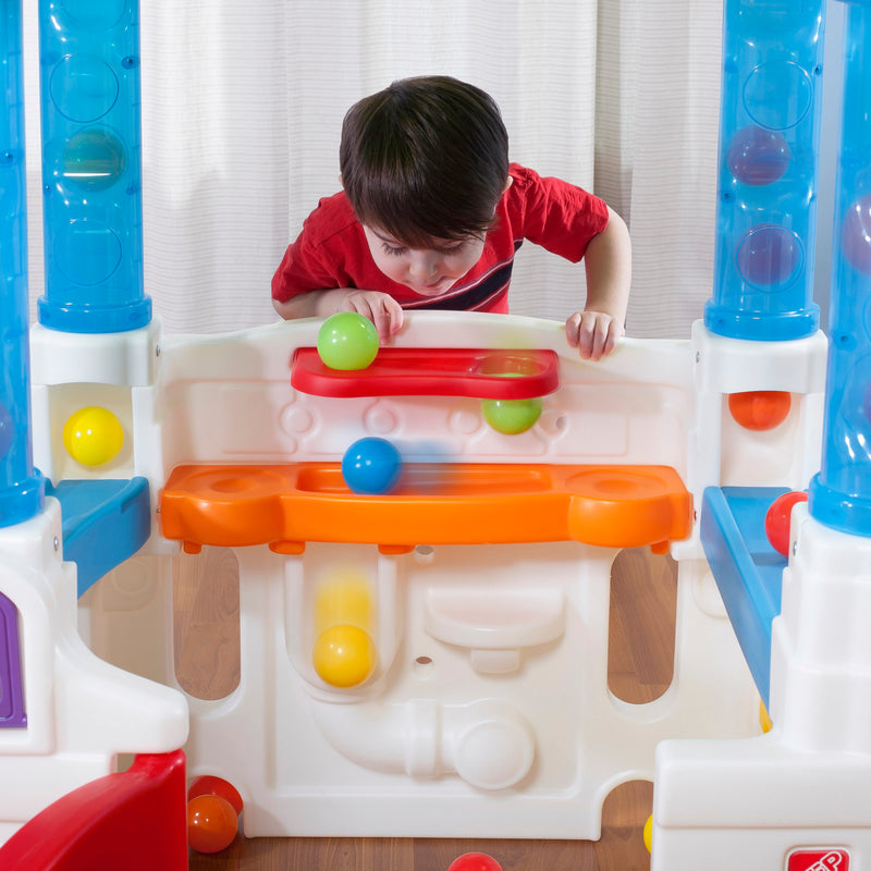 • Active Play - Kids can toss balls on the roof and watch as they fall through the maze