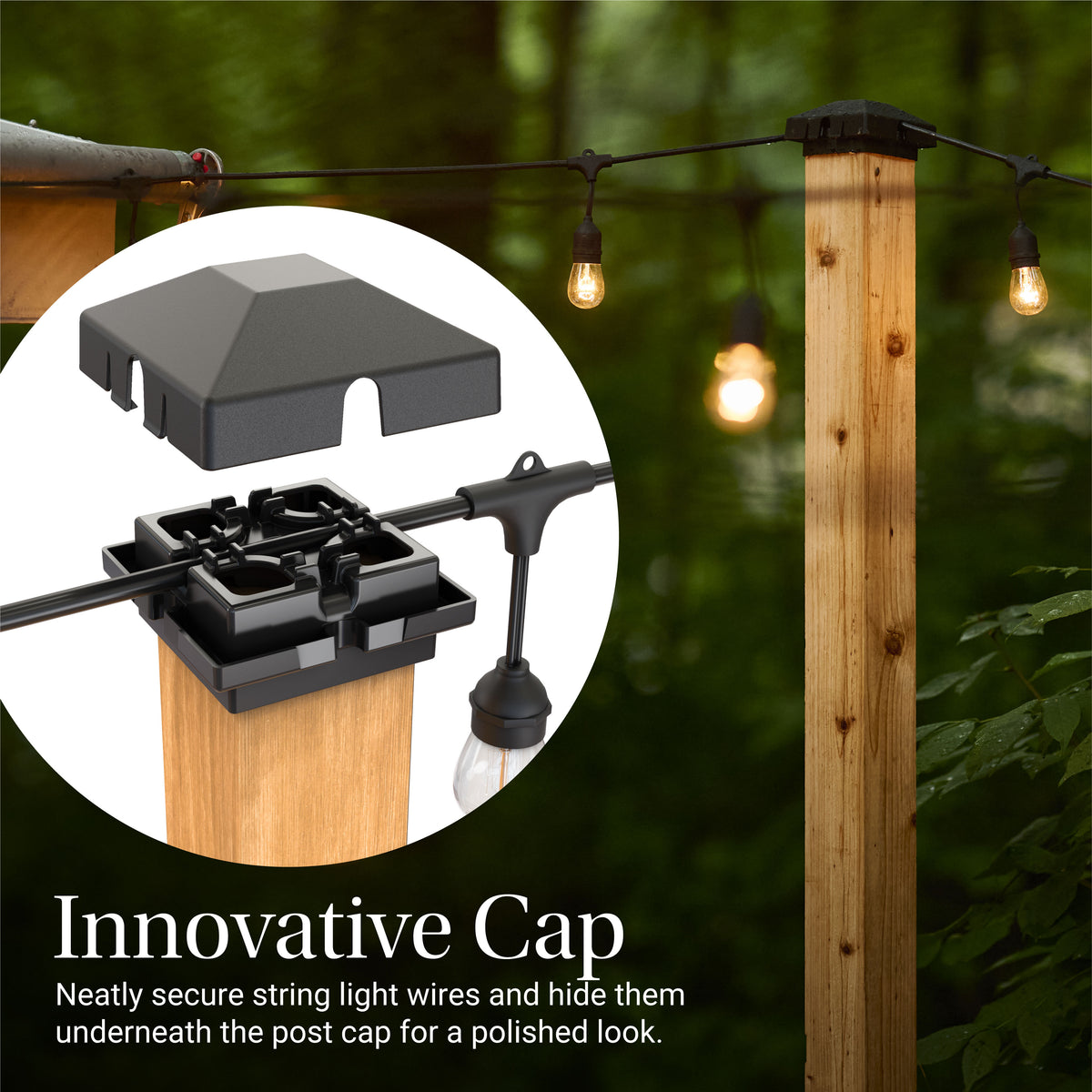 Create a cozy glow with this sturdy base for string light poles. It holds a standard 4x4 wooden post at the center, surrounded by space for flowers and trailing greens to complete the atmosphere. Define a patio, line a pat…