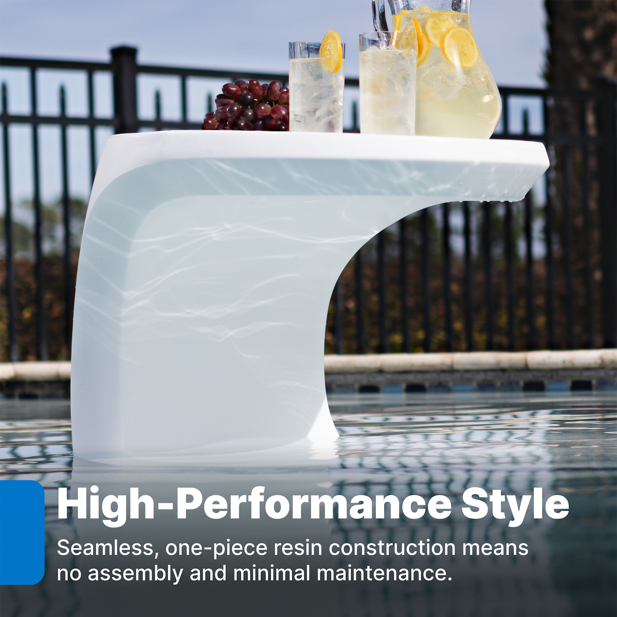 This In-Pool Side Table combines sleek, modern design with a cantilevered profile, perfect for poolside lounging or hovering over your lounger for easy access. Made from durable, low-maintenance high-performance resin, its one-pi…