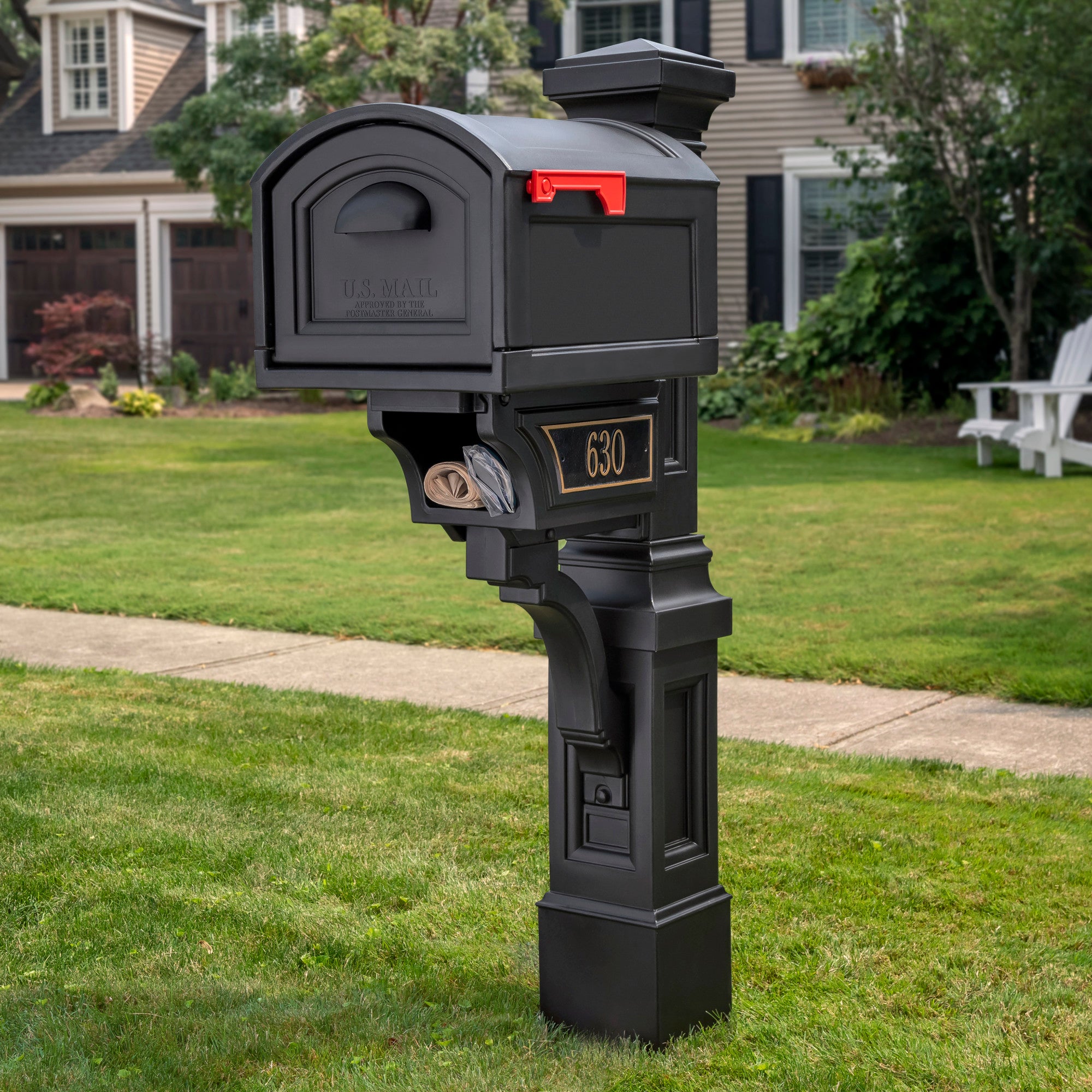 A stately, decorative mail post with an aesthetic worthy of any estate
