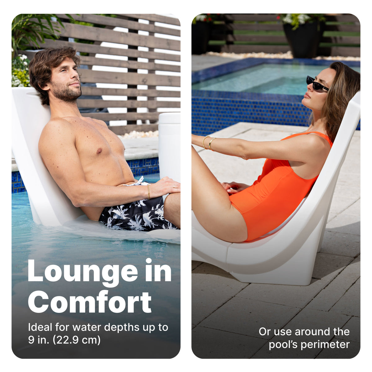 Lounge in comfort and keep an eye on your surroundings with the Vero Chair™. This in-water pool chair has a sleek design and an upright back ideal for around the pool or in water depths up to 9 in. (22.9 cm). The shapely, ergonom…