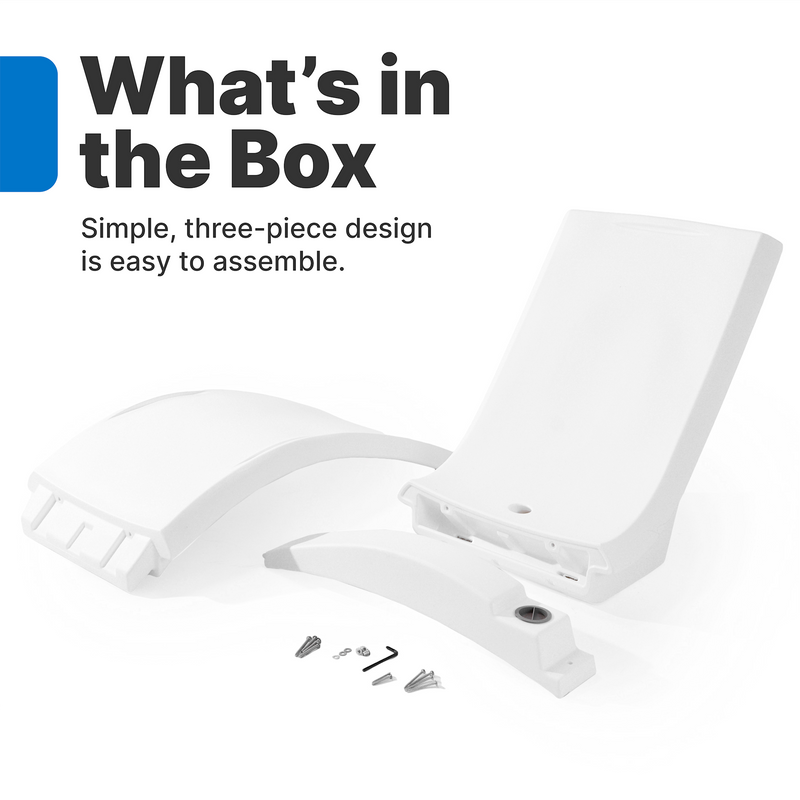 Lounge chair (two pieces), weight cavity, and assembly hardware