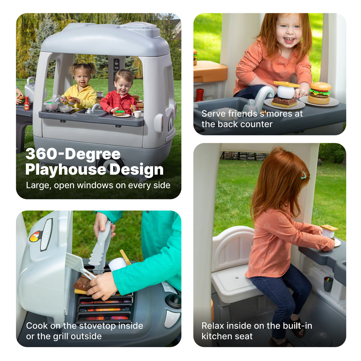 Explore the great outdoors with this play camper. The Adventure Camper is loaded with engaging pretend play activities perfect for social development. Featuring a molded-in kitchen area with large sink stovetop with clicker kn… Read more Read more