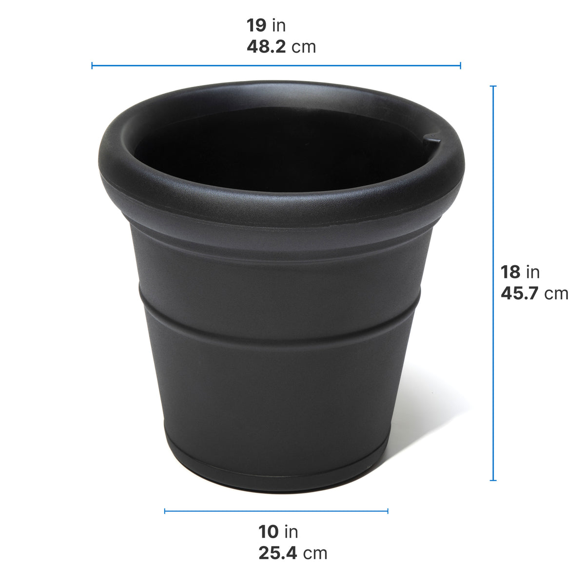 Internal reservoir reduces the need for frequent watering while enhancing stability of the plant pot
