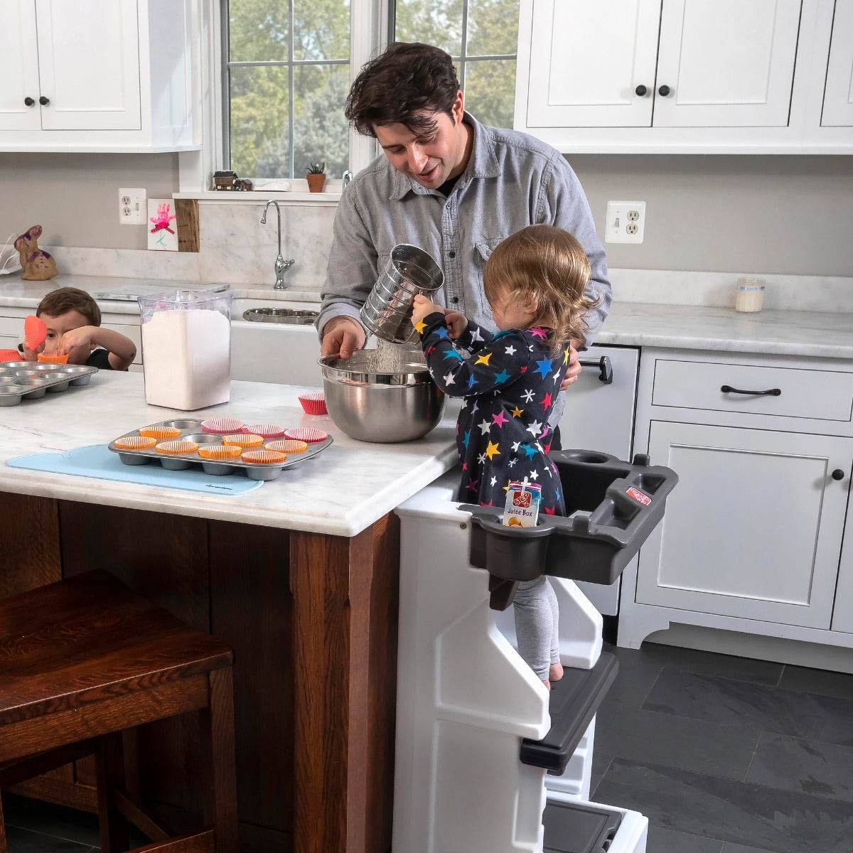 Kids love lending a helping hand! The Mobile Helper™ Toddler Tower provides an innovative, safe, and sturdy way to elevate little ones to the counter. With an enclosed bar around the stool’s top platform, your tiny helpers can co…